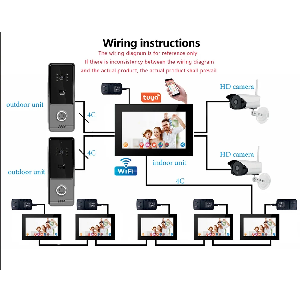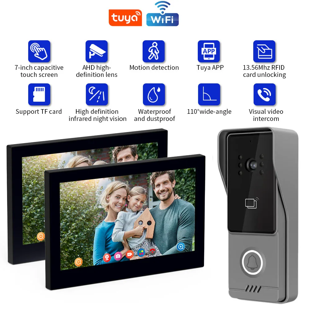 Wifi Tuya App Video Intercom 1080P Video Doorbell HD Camera for Apartment 7/10inch Touch Monitor one-key Unlock Motion Detection