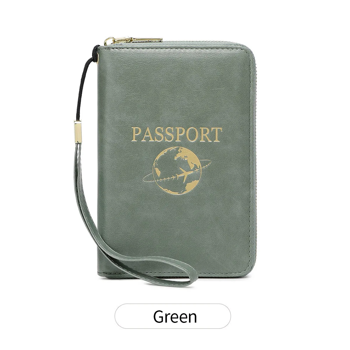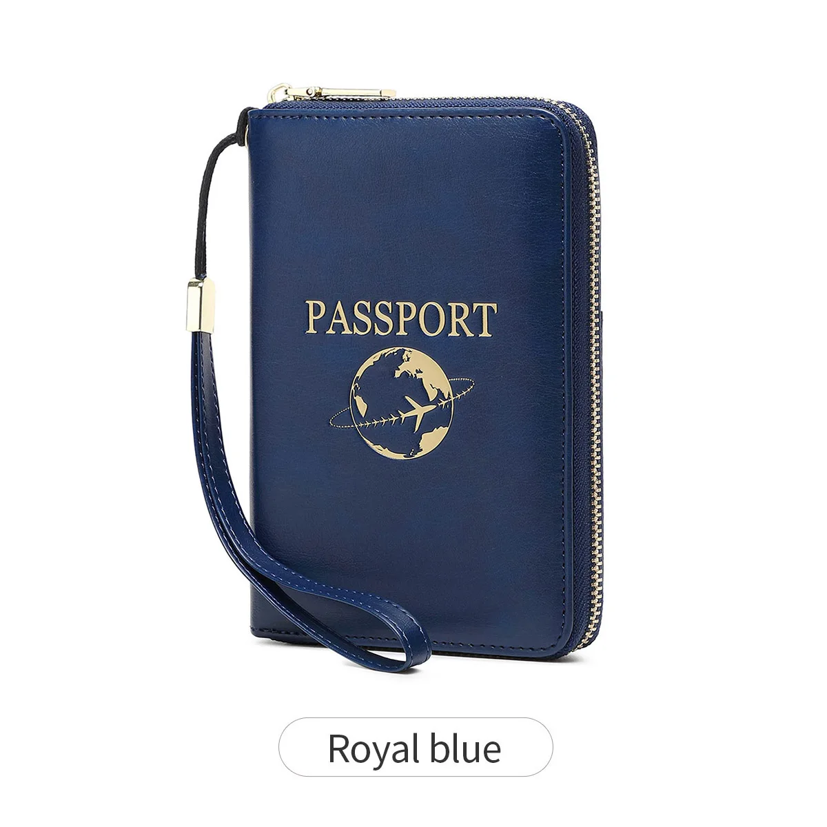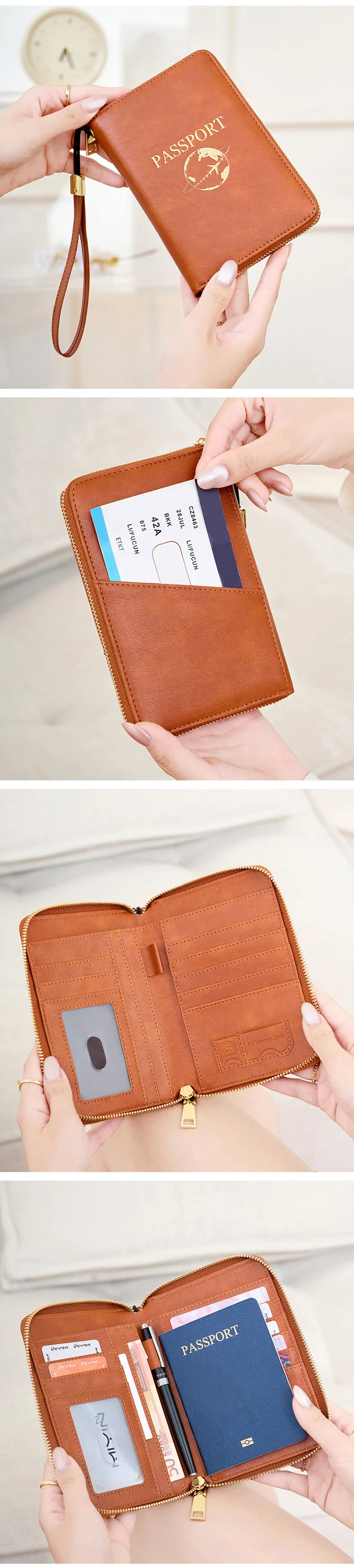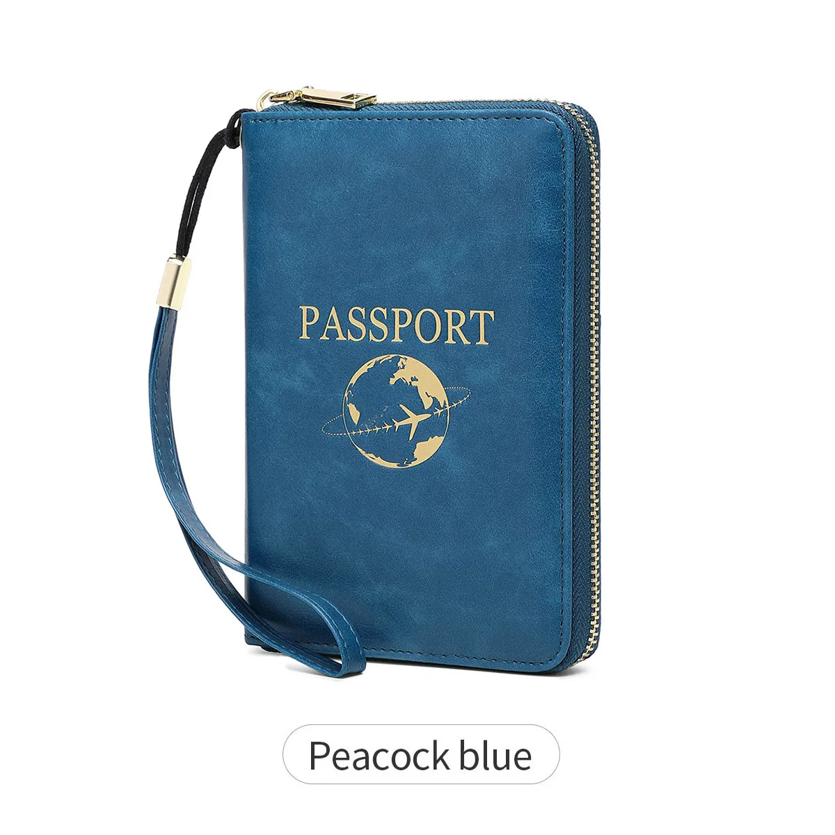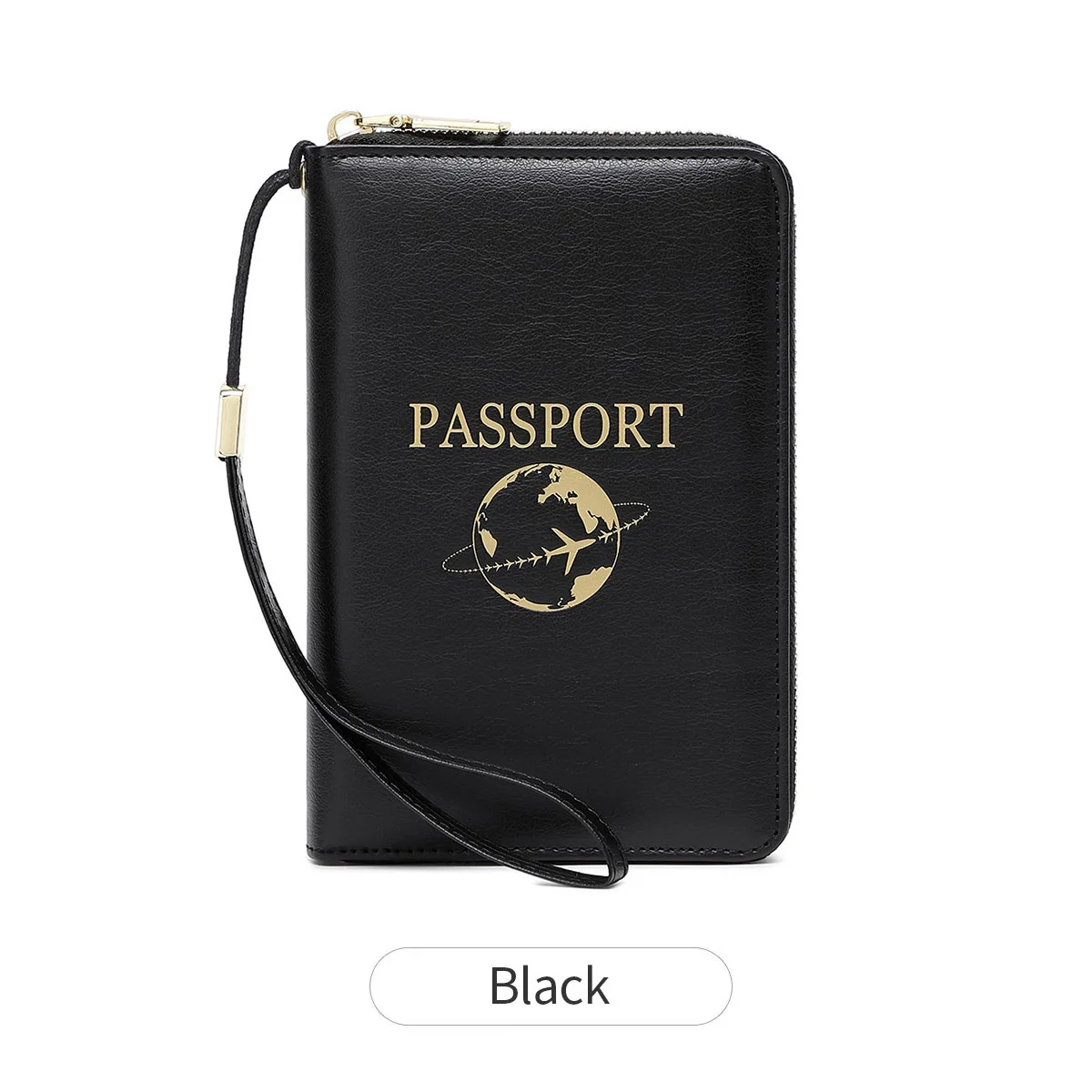 حامل جواز سفر يحجب RFID، محفظة سفر، جواز سفر، حقيبة بطاقات الائتمان، محفظة متعددة الوظائف بسحاب مع حزام معصم، موضة