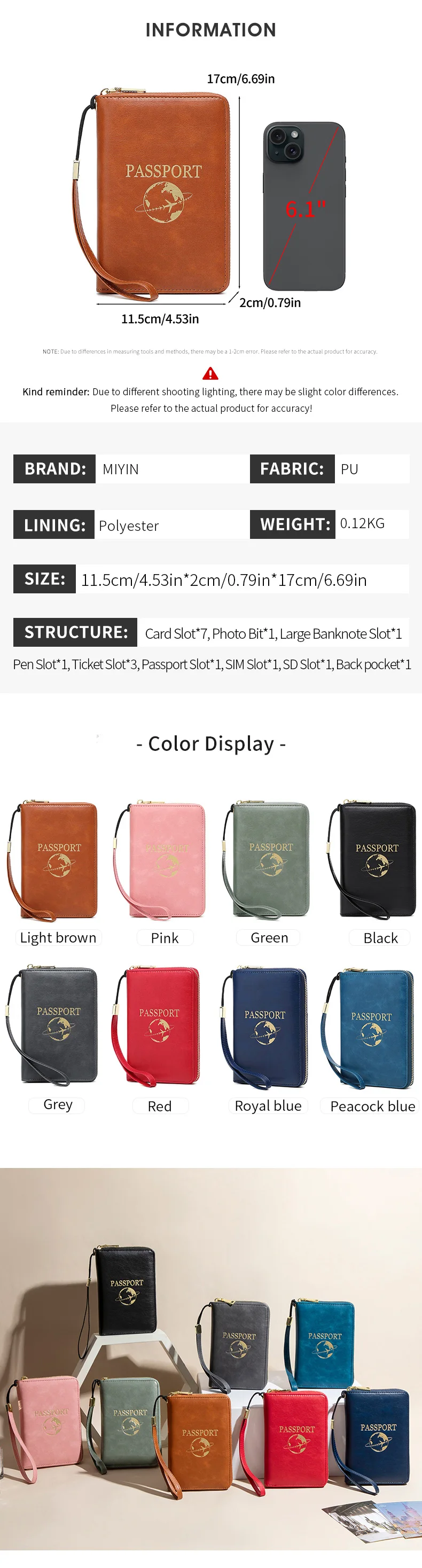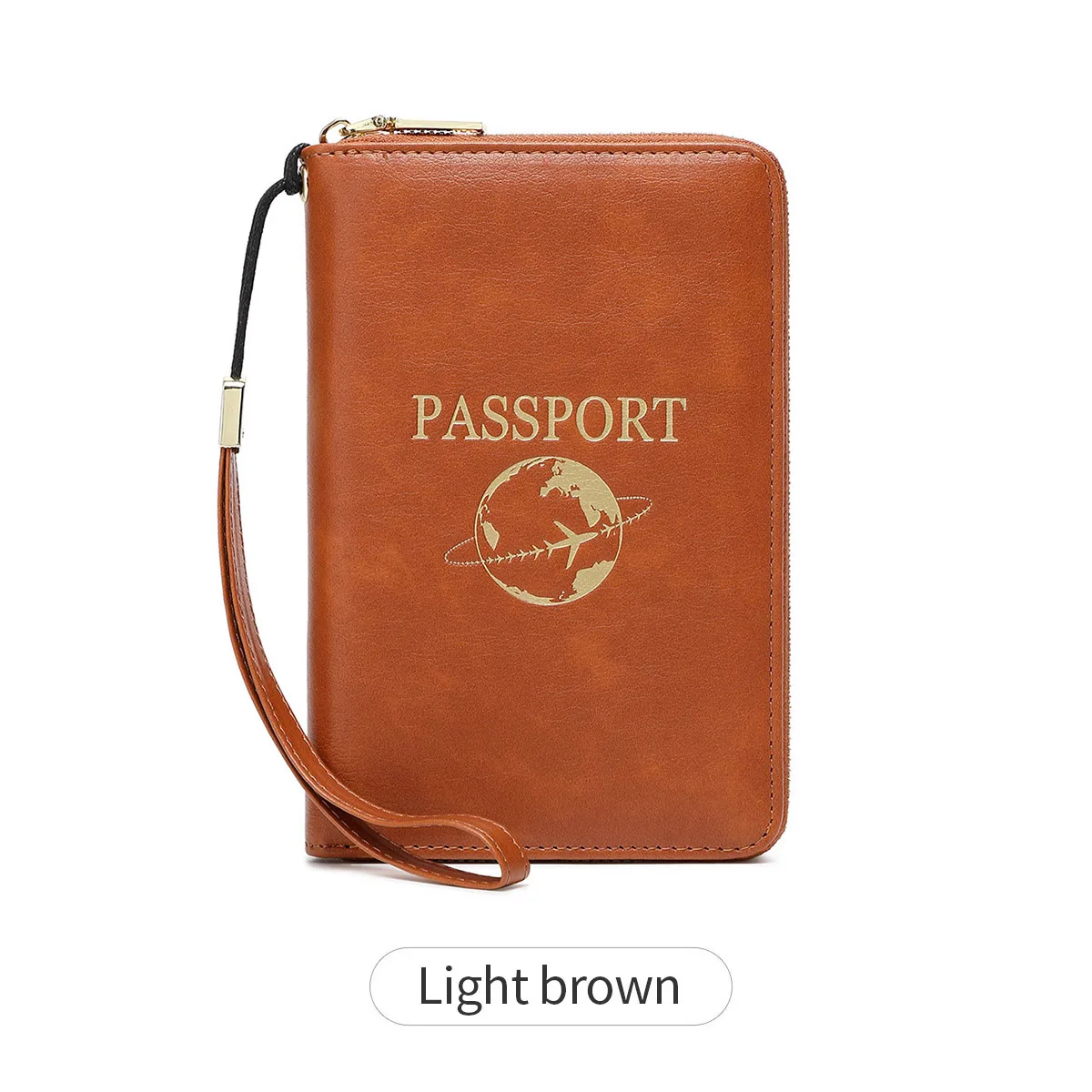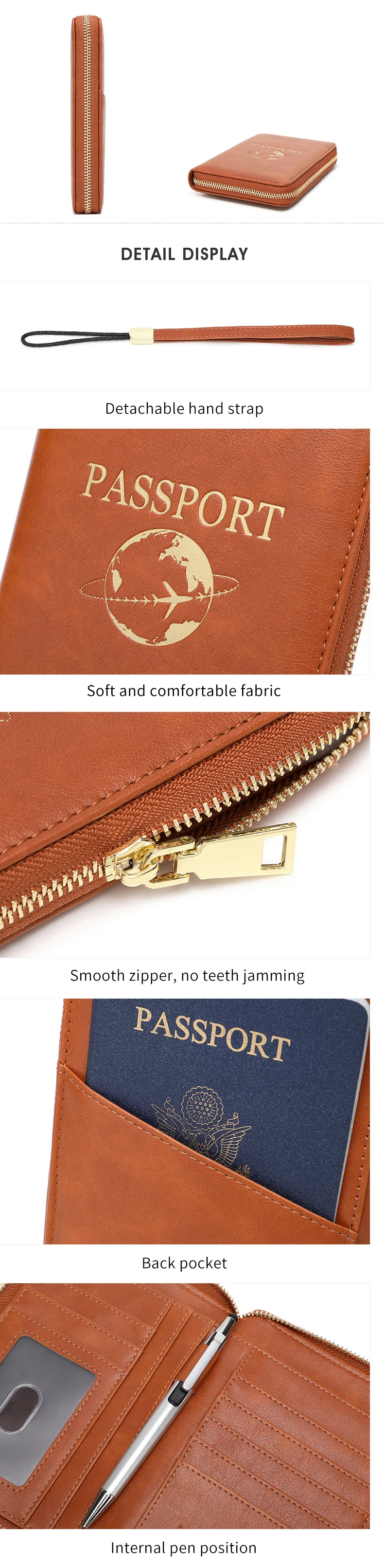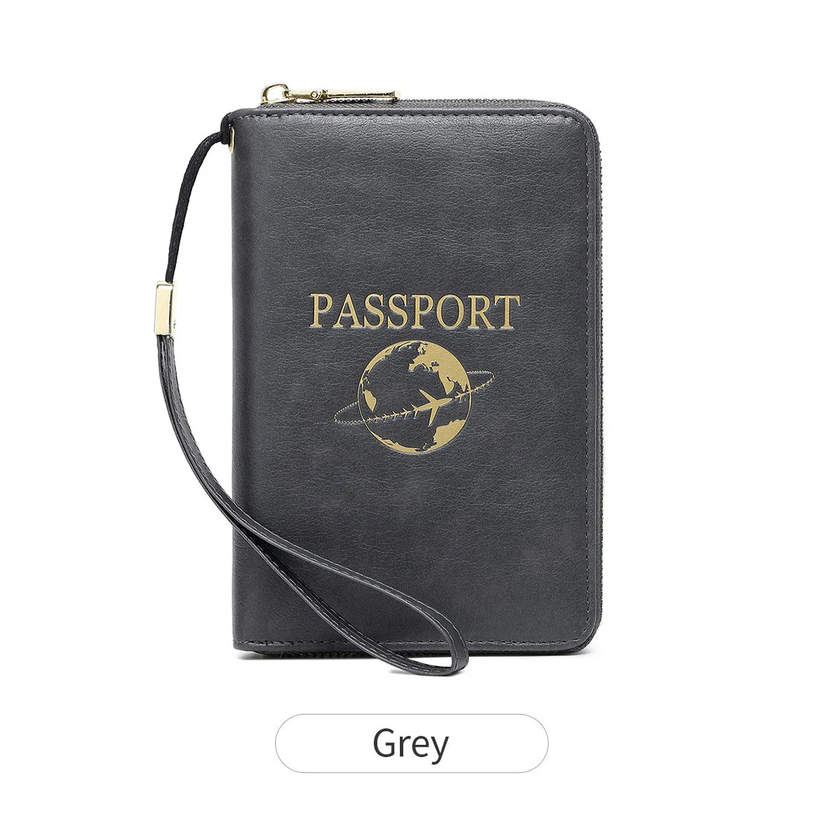 حامل جواز سفر يحجب RFID، محفظة سفر، جواز سفر، حقيبة بطاقات الائتمان، محفظة متعددة الوظائف بسحاب مع حزام معصم، موضة