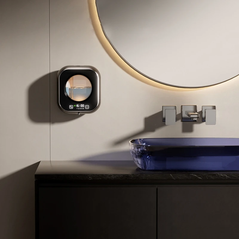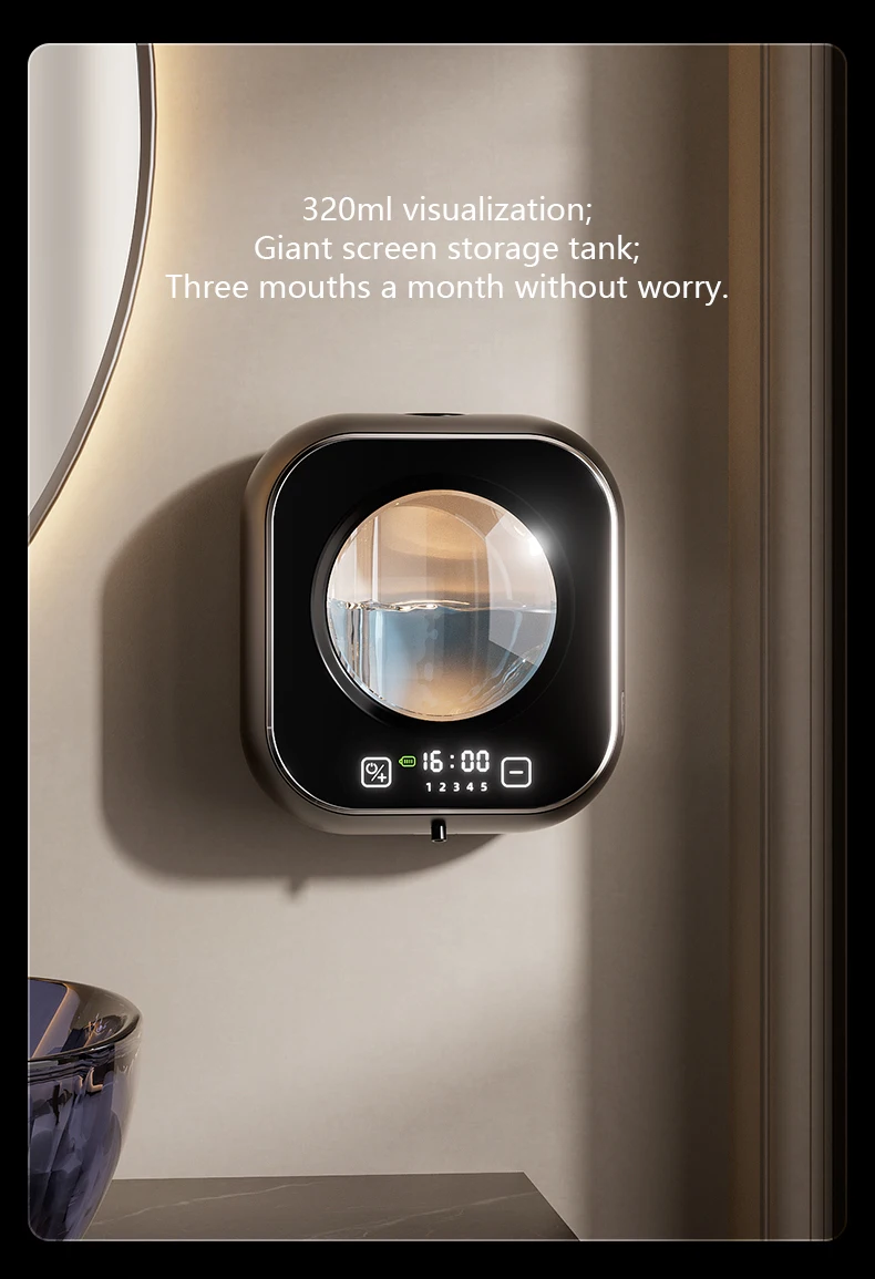 ترقية جديدة - شاشة لمس: يتميز موزع الصابون المتطور بشاشة لمس لا تغير وضع التشغيل، وتم تحسينه ليصبح مقاومًا للماء بمعيار IPX6، قابل لإعادة الشحن بسرعة عبر USB/C-C، ويمكن استخدامه بشكل مستمر لمدة تصل إلى 3 أشهر.